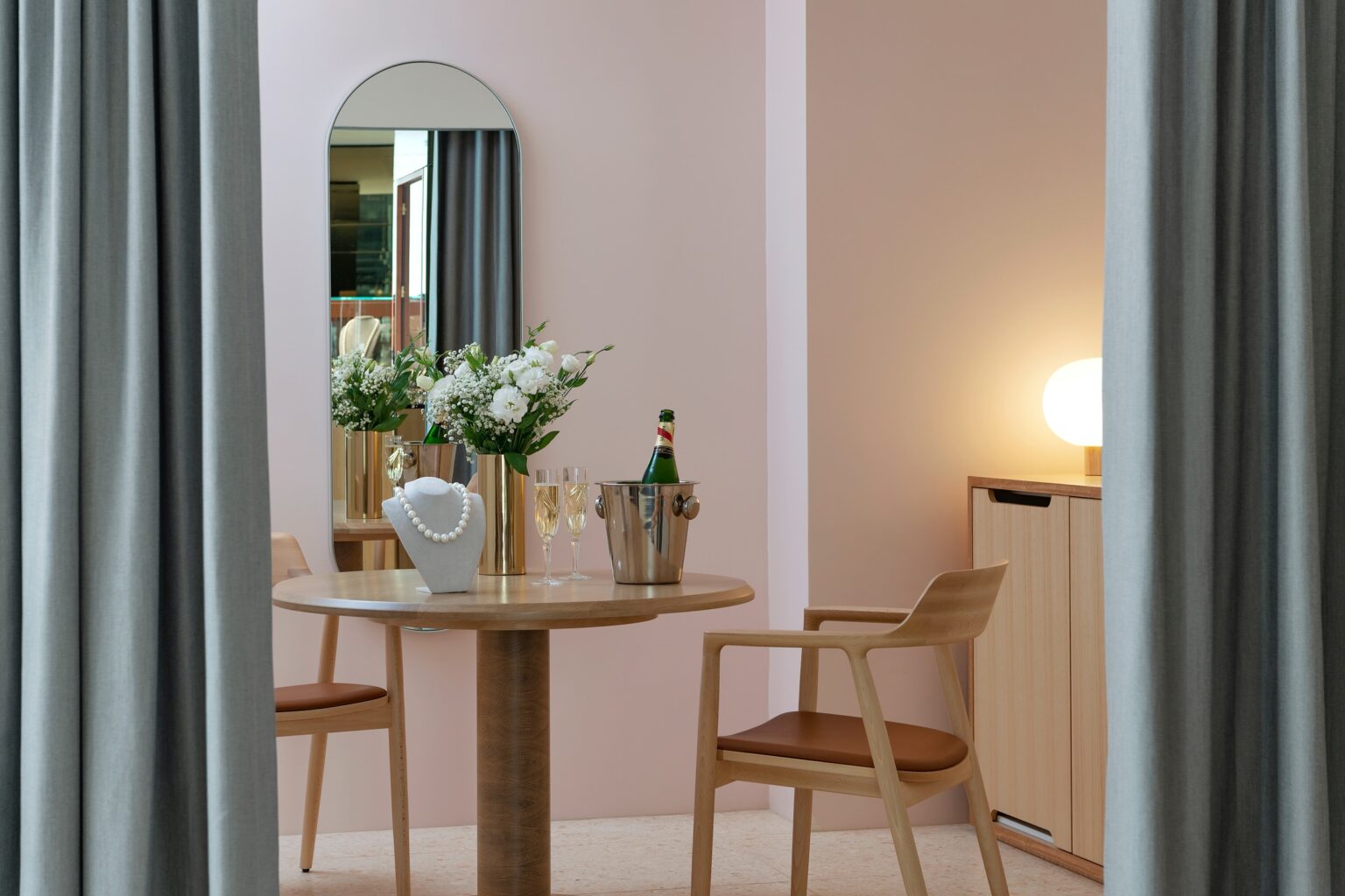 Our flagship boutique at Raine Square in Perth CBD features a discreet fitting room within the private viewing suite. Ideal for brides, the fitting room offers a unique opportunity to try on your wedding gown with our timeless jewellery.