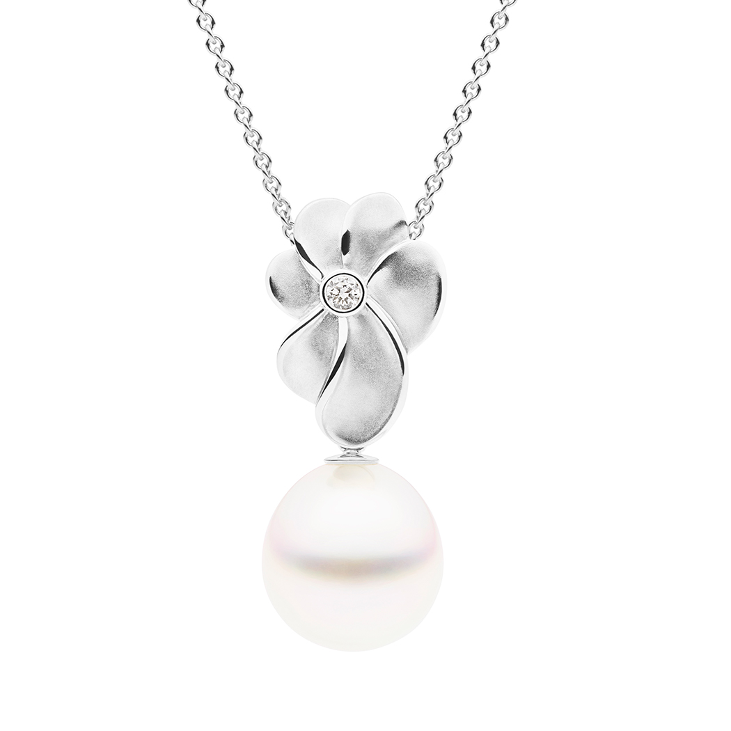 A diamond dew drop sparkling amongst delicate white gold petals in the morning sun as it opens towards a new day for the first time. Velvety and naturally perfect, enchanting with its purity, it reveals a lustrous Australian South Sea pearl. A symbol of love. An ode to the everlasting cycle of life. An elegant accessory for a modern day romantic. Soft lines creating a classic, feminine look.