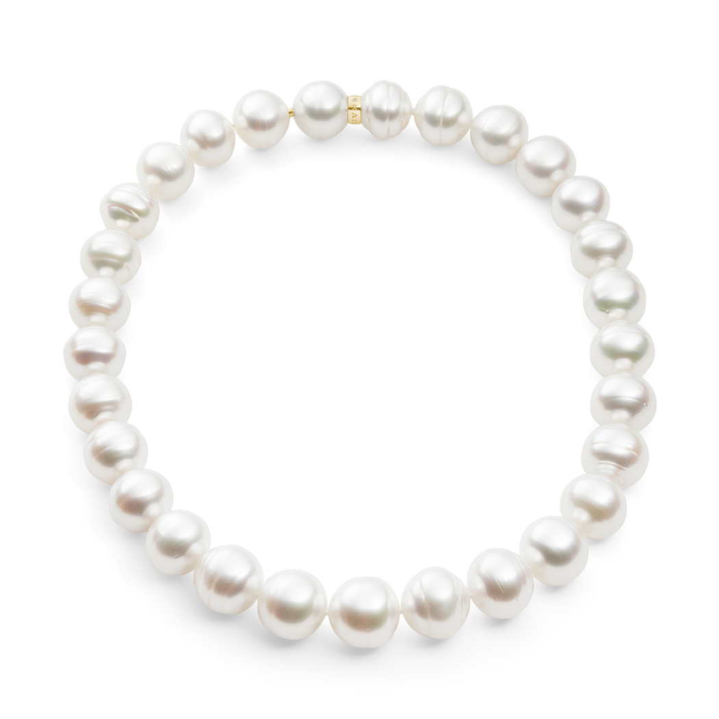 This luminous collier-length pearl strand features 35 Australian South Sea circle pearls, ranging in size from 14 to 15.9mm. Lovingly strung by hand using delicate silk thread in our Western Australian workshop, this piece is destined to be handed down through generations.