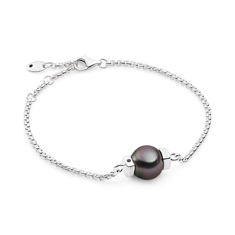 Effortlessly elegant, the Contempo Bracelet features a circle Tahitian South Sea pearl nested between two Kailis branded square caps, each featuring our signature secret black diamond. This contemporary sterling silver style easily transcends through every style.