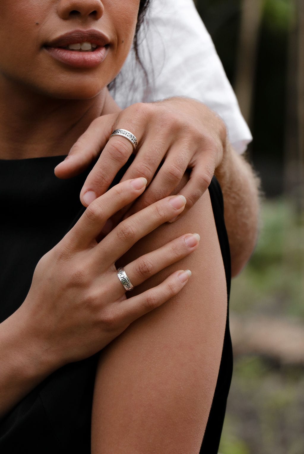 A striking duo, the Emboss and Deboss rings showcase high polished elements contrasted by oxidised silver in a Kailis signature mirrored pattern.