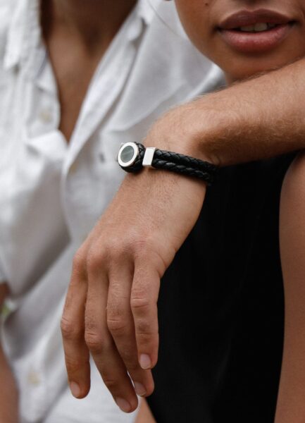 Braided leather meets mother of pearl to create two distinctive bracelet styles. Conquest is an edgy accessory destined for your everyday style repertoire.