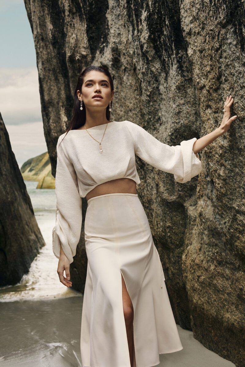 It comprises two distinct suites, which complement each other to form a unified full collection. Keystone, the namesake suite, showcases spectacular Australian South Sea pearls within four stunning pieces. Keystone Rise comprises earrings, a ring, pendant and bracelet without pearls, allowing the focus to be on the distinctive design.