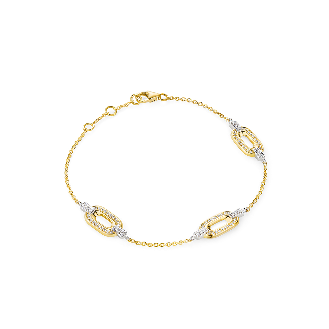 This bracelet features three of our signature Keystone Motifs, framed by a delicate yellow-gold chain.  The Keystone Rise Bracelet, Trio Motif exudes understated elegance and is a reflection of Kailis’ exceptional craftsmanship.