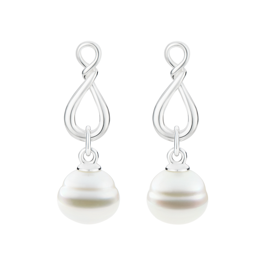 When an exceptional melody graces the air, time itself seems to hold its breath. The design of these earrings intertwines to suspend two beautiful Australian South Sea pearls as the heroes. Radiant and circle-shaped in size the beauty of the pearls captures the heart and soul of the wearer.