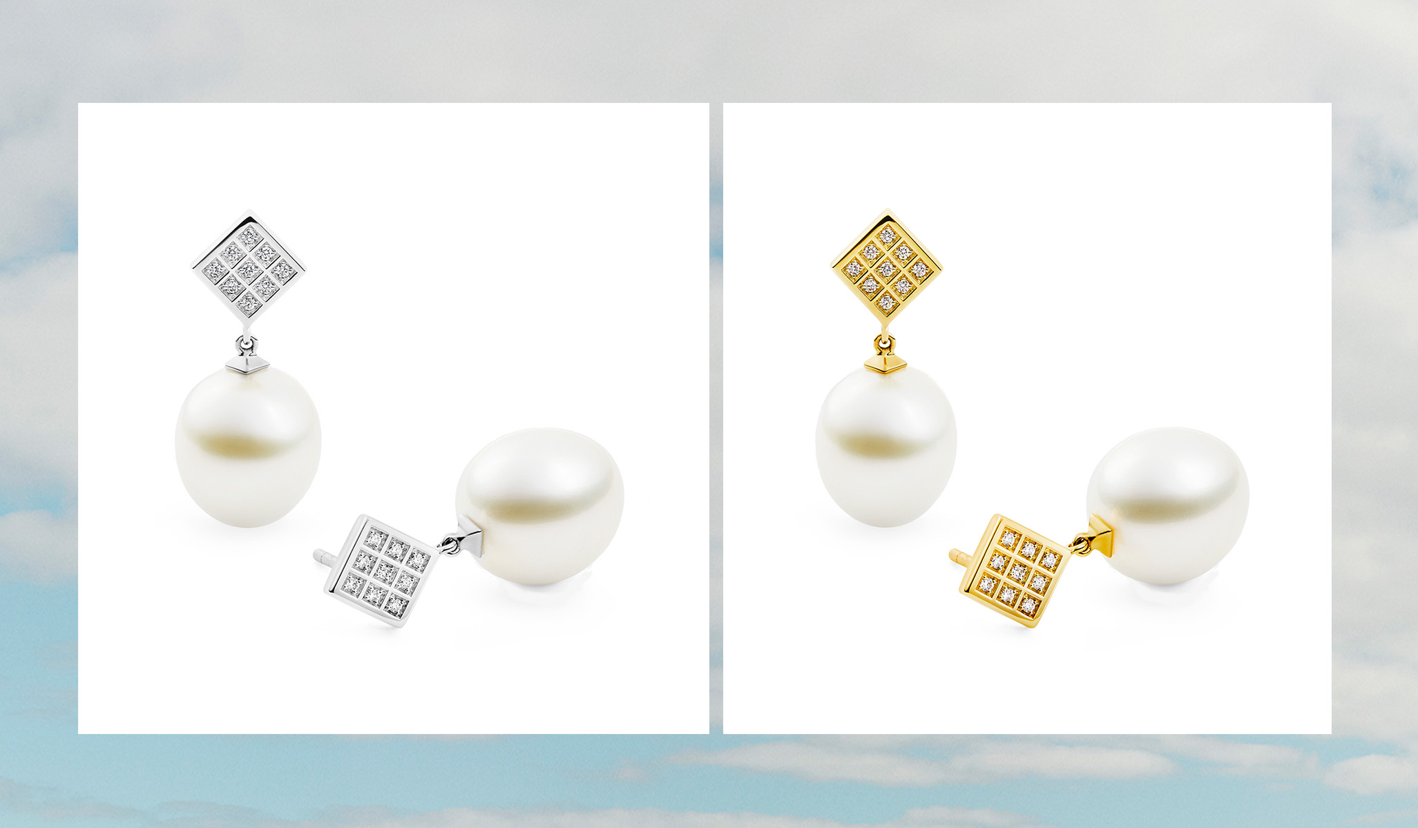 Our Soirée Earrings are an invitation to embrace Art Deco style. Highlighting an angular aesthetic reminiscent of this iconic era, these 18ct yellow or white gold earrings are imbued with classic sophistication. Each pavé set diamond offers endless sparkle, while spectacular Australian South Sea pearls bring natural radiance.